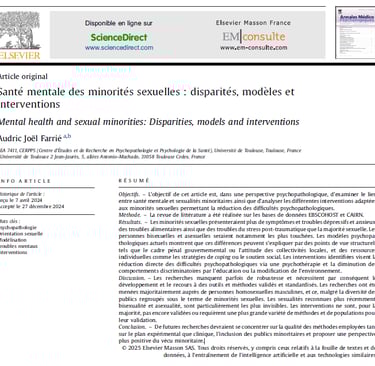 Farrié, A. J. (2025). Santé mentale des minorités sexuelles : disparités, modèles et interventions. AMP.